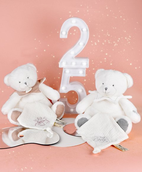 Doudou mouchoir ours Gris – 30 cm – Collection Anniversaire